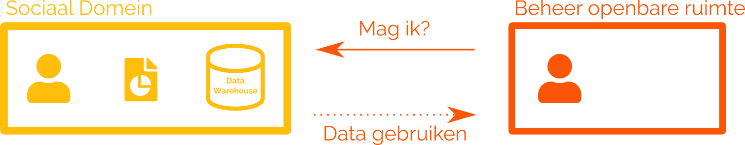 Daarom wordt er authorisatie toegepast op de opgeslagen data. Er worden regels gemaakt over wie bij de data mag en wie deze mag gebruiken. In de praktijk komt dit neer dat de afdeling Sociaal Domein (of eigenlijk beter gezegd de personen die werken binnen deze afdeling) en eventueel een paar extra medewerkers toegang krijgen tot deze data. In deze situatie verliest de afdeling controle over haar data door de centrale opslag en krijgt vervolgens via een omweg toegang. Met zo’n oplossing haal je zelfredzaamheid weg bij afdelingen, terwijl organisaties juist sturen op meer zelfredzame teams.